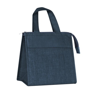 Lonchera de poliéster e interior metalizado, bolsillo frontal para organizar utensilios o pequeños accesorios. Bolsa principal con cierre y asa de mano que facilita su portabilidad. Capacidad para 6 latas. Medidas: 21.7 x 21.5 x 13.6 cm