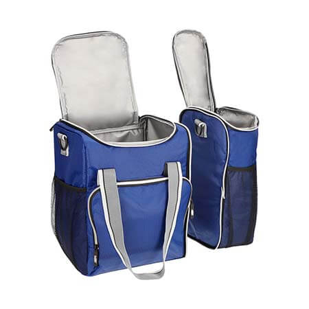 Doble compartimiento con cierre. Cierre intermedio que permite separar en dos piezas y usarlas de forma individual. Interior plastificado. Bolsillo frontal con cierre. Malla frontal y lateral. Correa ajustable. Identificador en la parte trasera. Medidas: 38 x 34 x 21 cm