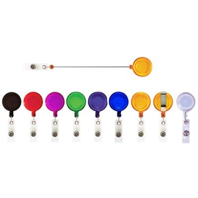 Yoyo portagafete de color traslúcido. Medidas: 8.4 alto x 3 ancho
