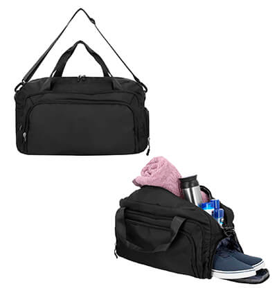 Maleta con 1 compartimento principal, 2 compartimentos frontales, zapatera, 1 compartimento lateral y asas. Medidas: 28.6 alto x 48 ancho