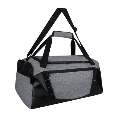 Maleta deportiva equipada con bolsa principal y una adicional en la parte frontal, ambas con cierre. Además, cuenta con un compartimento lateral para calzado yun bolsillo lateral de malla. Incluye correa ajustable para hombro y asas de agarre superior. Las costuras frontales permiten colgar objetos en ellas. Medidas: 50 x 26 x 25