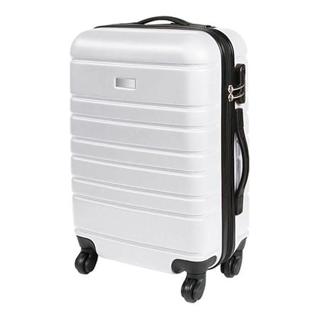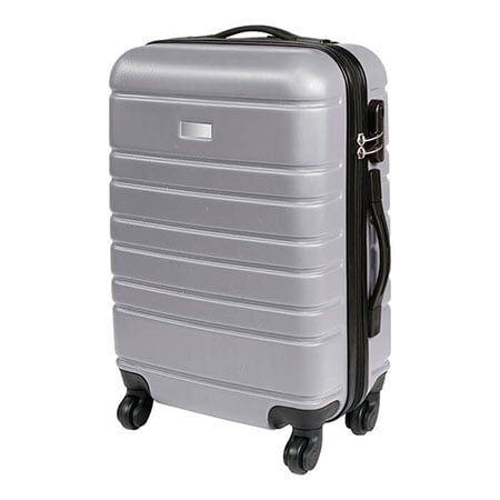 Maleta rígida de viaje con exterior fabricado en plástico ABS e interiores en poliéster, con mango retráctil de aluminio, 4 ruedas resistentes, 2 agarraderas para poder cargarla horizontal o verticalmente, chapa de seguridad con 3 dígitos de combinación y placa metálica para grabado. Capacidad de carga de 10 kg. Medidas: 47x37x57 cm.
