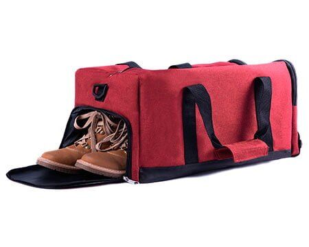 Maleta deportiva con dos compartimentos laterales, uno para guardar tenis y el segundo para objetos personales. Cuenta con bolsa externa con cierre, asa central ajustable y asas laterales. Medidas: 55 x 28.5 x 25.5 cm