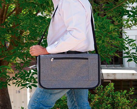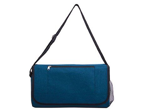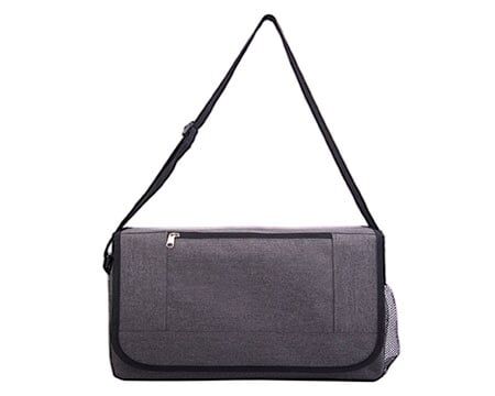 Maletín con correa larga ajustable. Cuenta con una bolsa lateral de malla y bolsa al exterior con cierre. Medidas: 38 x 24.5 x 10cm