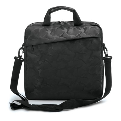 Maletín porta laptop de 15.6 Pulgadas con dos compartimentos con diseño de camuflaje. Interior acolchado con compartimento para accesorios. Correa larga ajustable y asas. Banda para sujetarse sobre maleta de viaje. Medidas: 39.5 x 31 x 9 cm