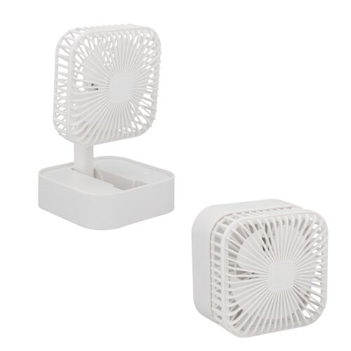Mini ventilador plegable y de tamaño ajustable capaz de cambiar su posición a 180°. Incluye 3 velocidades, batería recargable y cable de carga DC5V. Medidas: 10.5 alto x 10.5 ancho