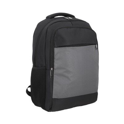 Mochila de 3 compartimentos con cierre, espacio acolchado para laptop de 17", dos mallas laterales, asa y carry on. Medidas: 45.5 alto x 33.5 ancho