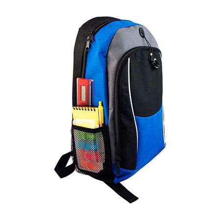 Mochila tipo backpack fabricada en poliéster, con bolsa de red a un costado y salida para audífonos, asa en la parte superior, cuenta con tiras ajustables para mayor comodidad. Medidas: 42x27 cm.
