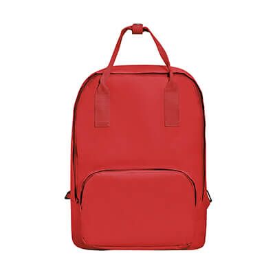 Bolsa principal y bolsa frontal con cierre. Cuenta con tirantes ajustables y asa de agarre superior con broche metálico. Con capacidad para laptop de hasta 14". Medidas: 28 x 38 x 14 cm