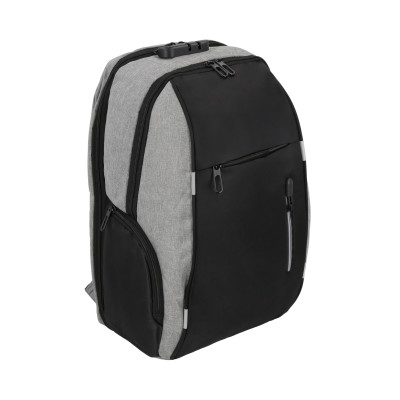 Mochila de seguridad con 2 compartimentos, porta laptop de 18", 2 compartimentos laterales, 2 compartimentos frontales, asa de aluminio, candado de seguridad y puerto de carga USB. Medidas: 45.5 alto x 23.5 ancho