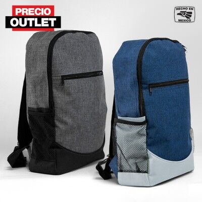 Mochila de poliéster con bolsa principal acolchada. Bolsas laterales de malla y compartimiento frontal.