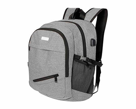 Mochila con salida USB (se requiere conectar a batería portátil) para cargar smartphone. Bolsa principal con espacio para laptop de 17" y tablet. Bolsa frontal con organizador y 2 bolsas frontales con cierre. 2 Bolsas laterales de red con broches ajustables de plástico. Salida para audífonos. Aditamento especial trasero para poner en trolley. Placa metálica removible para fácil grabado. Respaldo y tirantes acojinados. Medidas: 28 x 43.5 x 14.5 cm