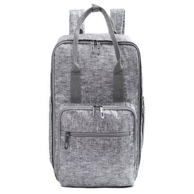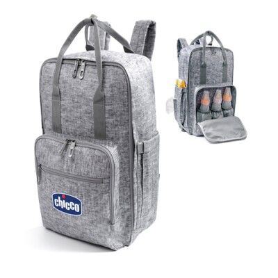 Mochila pañalera con tres compartimentos y dos bolsas laterales, una de ellas con ranura para toallas húmedas, abre a 180°. Bolso frontal con tres espacios térmicos de alufoil. Compartimiento interior con organizadores para accesorios y dos bolsas con cierre. Correas acolchadas ajustables, doble asa con broche a presión. Medidas: 29 x 40 x 15 cm