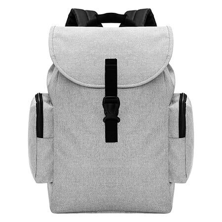 Capacidad 13 litros. Snow. Mochila con dos bolsillos laterales con cierre. Compartimento principal con porta laptop. Cierre con cordón ajustable y tapa de tela con hebilla plástica. Correas acojinadas. Tiradores de cierres con cordones. 42,5 x 28 x 11 cm.