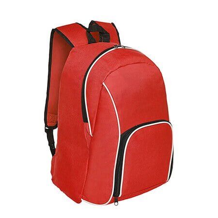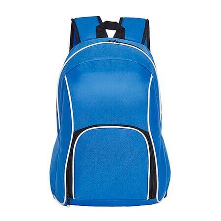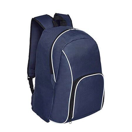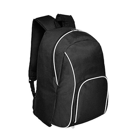 Capacidad 15 litros. Polyester 600D. Mochila con compartimento principal y bolsillo frontal en la parte inferior con cierre. Vivos blancos. Parte interna acolchonada. Correa ajustable y manillas acolchadas. 43 x 32 x 13,5 cm.