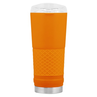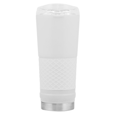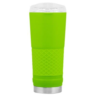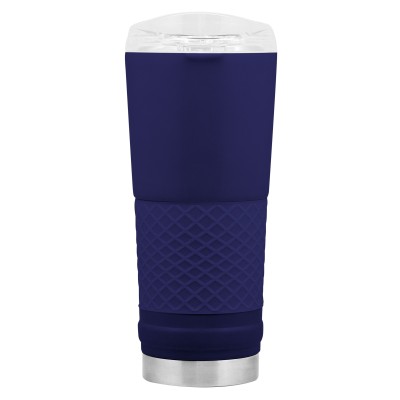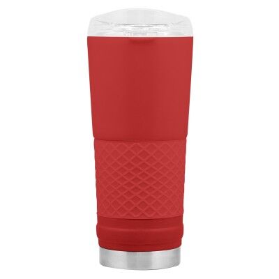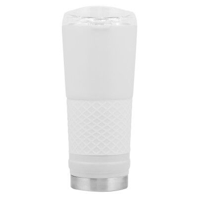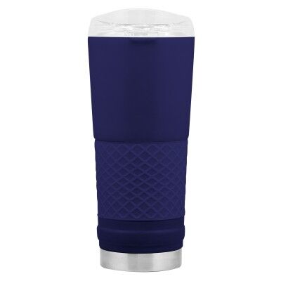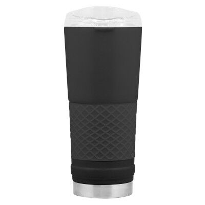 Ø 8,5 x 23 cm. Capacidad 720 ml. Acero inoxidable. Mug doble pared. Interior en acero 304 y exterior en acero 201. Manga antideslizante de silicona. Tapa plástica transparente a presión con boquilla y seguro antiderrame. Presentación en caja de regalo.