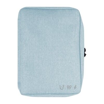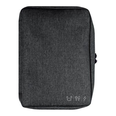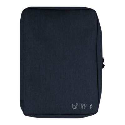19 x 26 x 5 cm. Poliéster. Organizador para cables y accesorios. Cuenta con dos bolsillos de red con cierre. 4 elásticos que permiten enrollar y guardar los cables, 1 elástico porta bolígrafo y 2 elásticos amplios. NO INCLUYE ACCESORIOS.