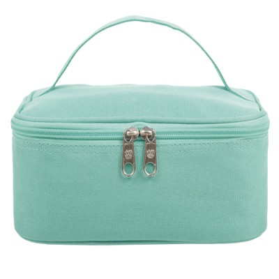 Organizador multiusos de poliéster que incluye: asa superior, 2 compartimentos de malla, 2 compartimentos intermedios con resorte y un compartimento amplio en la base para guardar. Medidas: 23 x 19 x 9 cm