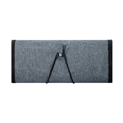 Organizador enrollable para accesorios. Contiene dos compartimentos con cierre y malla, un compartimento intermedio con bandas elásticas y un compartimento con dos bolsillos. Cierre con elástico. Medidas: 23 x 11 cm Cerrado / 23 x 43 cm Extendido