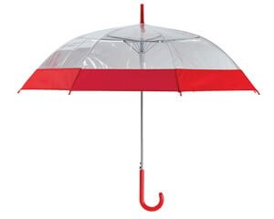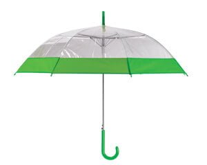 Paraguas de PVC transparente con banda de color y mango curvo de plástico. Apertura automática.