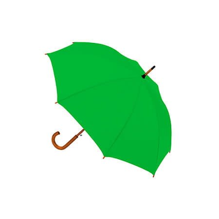Ø 100 cm.Poliéster de 27" Aprox. Vara de madera, mango curvo de madera, automático. 8 gajos. Longitud de vara: 89 cm. Varillas metálicas APERTURA AUTOMÁTICA. Largo total 89 cm. 8 cascos. Medida de gajos 40x59 cm. Cobertura de 103 cm. Ancho de vara de 1,3 cm.