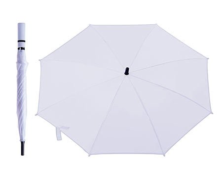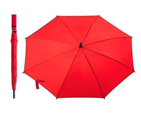 Paraguas con botón de apertura automático, varillas y eje de metal. Cuenta con mango de EVA con detalle de color. 8 gajos. Medidas: Abierto: Ø 95 x 77 cm / Cerrado: 75.5 cm