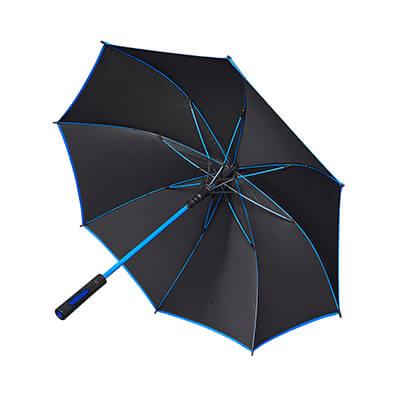 Automático. 8 Paneles y mango de plástico. Marco de fibra de vidrio y bies de color que hacen juego con el marco y el mango. Incluye funda con agarradera. Medidas: 105 cm de Diámetro