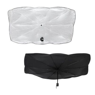 Parasol panorámico plegable de poliéster para auto en forma de sombrilla con funda para guardar. Medidas: 75 alto x 132 ancho