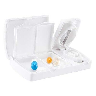 Pastillero con corta pastillas y 2 compartimentos separables. Medidas: 9.5 x 4.7 cm