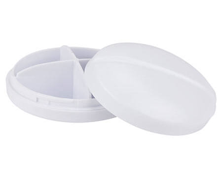 Pastillero con 4 compartimentos. Medidas: 6.4 cm Diámetro