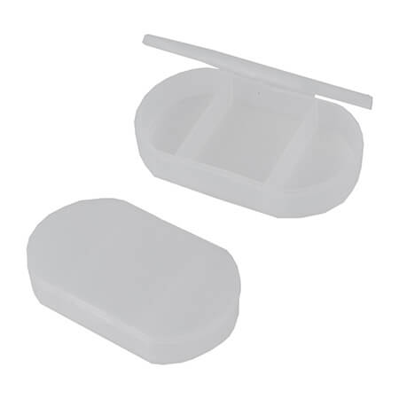 Pastillero de plástico con tres compartimentos. Medidas: 3.9 alto x 6 ancho