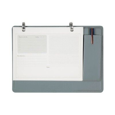 Planeador semanal con diseño plegable. Cubierta de curpiel y dos aros metálicos. Incluye 40 hojas reticuladas y dos blocks de 25 notas cada uno, además de 5 colores diferentes de banderines con 25 notas cada uno y un porta plumas. Su diseño permite desplegarlo para tener tus apuntes a la vista y organizar tus tareas diarias fácilmente. Medidas: 24.5 x 19 x 2 cm