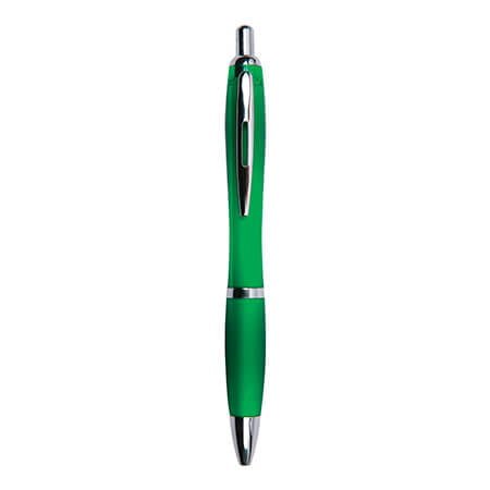 Bolígrafo plástico con grip de goma, detalles en color plata, sistema push, tinta negra