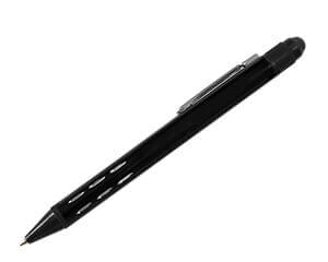 Bolígrafo metálico con sistema de apertura retráctil en la parte superior; touch para dispositivos con pantallas táctiles y pequeñas hendiduras para sujeción, un pequeño detalle que lo hace lucir. Medidas: 13.8 x 1.1 cm