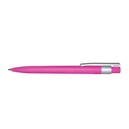 Bolígrafo de color con detalles en color plata, tinta negra, sistema push. Colores vivos que resaltaran tu marca