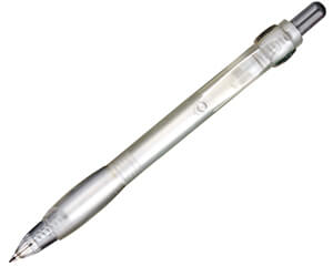 Bolígrafo de plástico translúcido y mecanismo de click.
