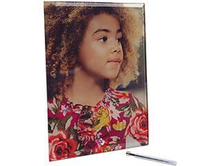 Porta retrato de vidrio para sublimar, La imagen queda adherida al vidrio por la parte posterior.