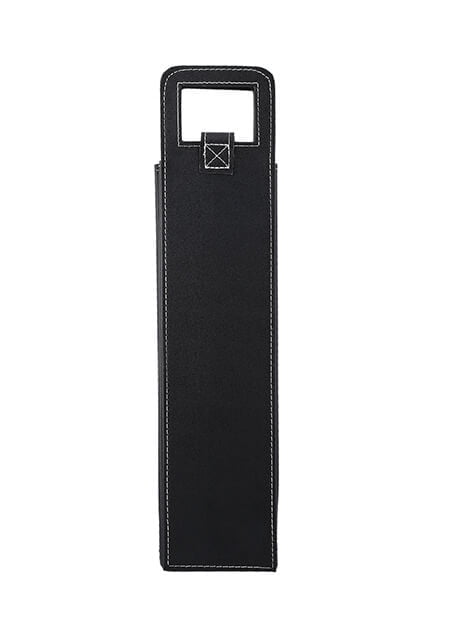 Porta botella de curpiel con asa y broche. Medidas: 40.5 alto x 8.5 ancho