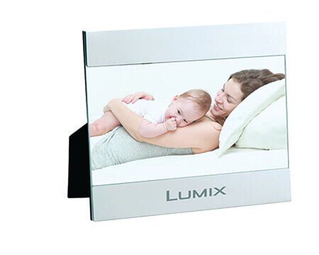 Portarretrato de aluminio con soporte plegable. Incluye vidrio de 3 mm de espesor. Presentación: caja en color blanco. Medidas: 18.7 x 18.5 cm