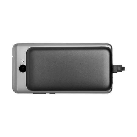 13 x 6,6 x 1,1 cm. Plástico. Capacidad 4000 MAH. Power Bank. En la parte de atrás engomada con ventosas que permite la adhesión en el dispositivo que se está cargando. Cuenta con espacio para guardar el cable USB. Dos entradas: una mini USB que permite cargar Iphone y Android y una entrada USB. Botón de encendido y luces indicadoras de carga en el lateral inferior. La parte de adelante lisa con amplio espacio para personalizar. Presentación en caja de regalo.