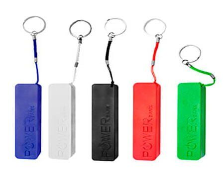 power bank plastico con capacidad de 2,600 mah, incluye cable con 5 adaptadores