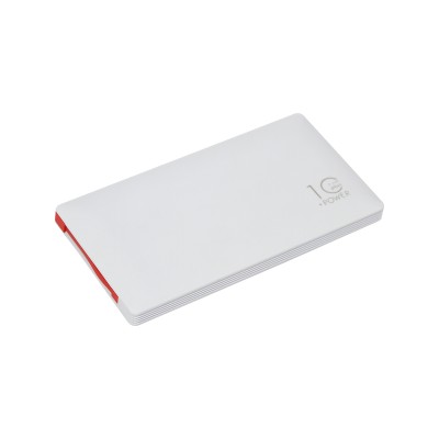 Power bank fabricada en plástico ABS con acabado rubber, 2 entradas USB, salida tipo C y micro USB, capacidad de 10,000 mAh. Medidas: 13.4x7 cm.
