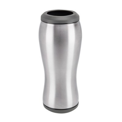 Doble pared. Pared interna y externa acero inoxidable. Tapas intercambiables para lata o botella. Mantiene la bebida fría. Incluye caja individual. Medidas: 8 x 21 cm