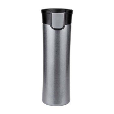 Doble pared. Cerrado al vacío. Pared interna y externa acero inoxidable. La tapa incluye botón pulsador para abrir y cerrar con sistema desmontable. Mantiene temperatura caliente 6 hrs y temperatura fría 8 hrs aproximadamente. Incluye caja individual. Medidas: 8.5 x 24.2 cm