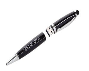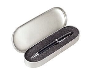 Bolígrafo de dos piezas, bolígrafo y USB de 4GB con punta touch. Incluye estuche metálico. Medidas del estuche: 17.8 x 6 cm.