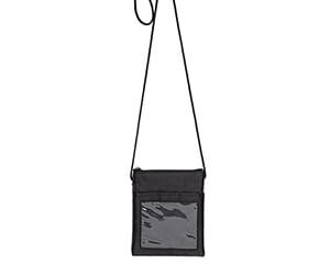 Porta documentos con correa ajustable, cierre, tres compartimentos y ventana plástica.