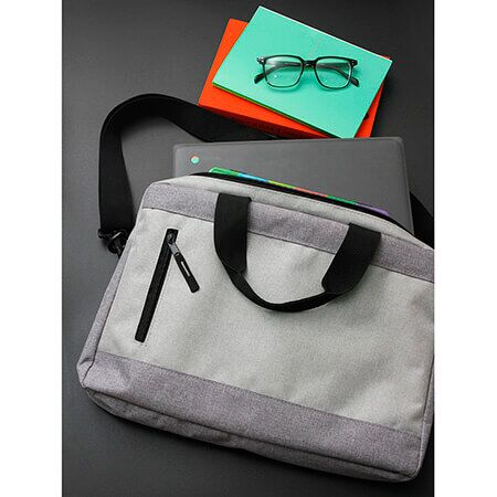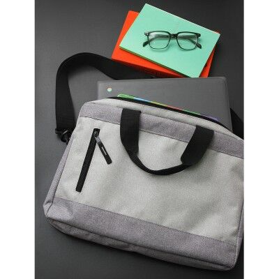 Portafolio bi-tono fabricado en poliéster, con correa de hombro ajustable y desmontable, bolsillo frontal y asas superiores. Increíble opción para transportar de manera segura tu laptop y ya no tendrás que preocuparte por dañar tu dispositivo mientras te desplazas. Medidas: 28x40 cm.