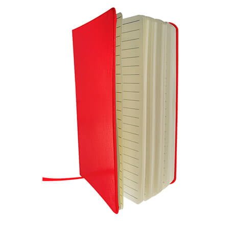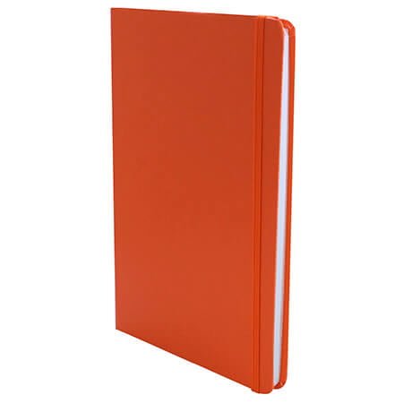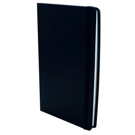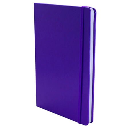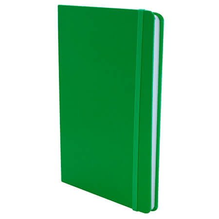 Cuaderno grande con elástico, 80 hojas de raya y sobre de guarda en la parte de atrás.