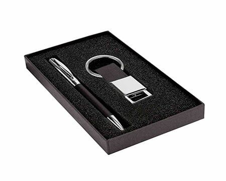 Incluye bolígrafo, llavero y caja de regalo. Medidas: 3.3 x 9.5 cm Llavero / 1 x 13.3 cm Bolígrafo