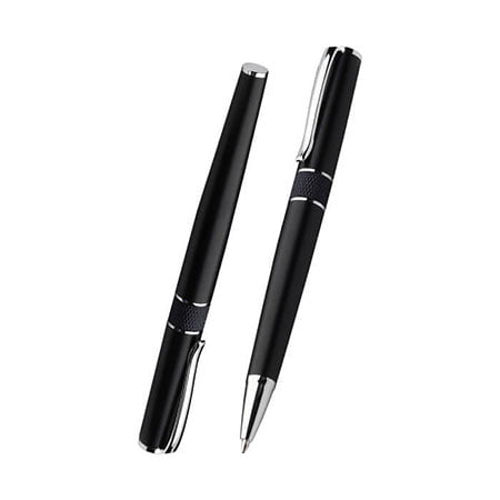 Set de bolígrafos ball pen y roller pen con barril metálico en estuche de cartón, tinta de escritura negra. Medidas: 13.7x1.3 cm.